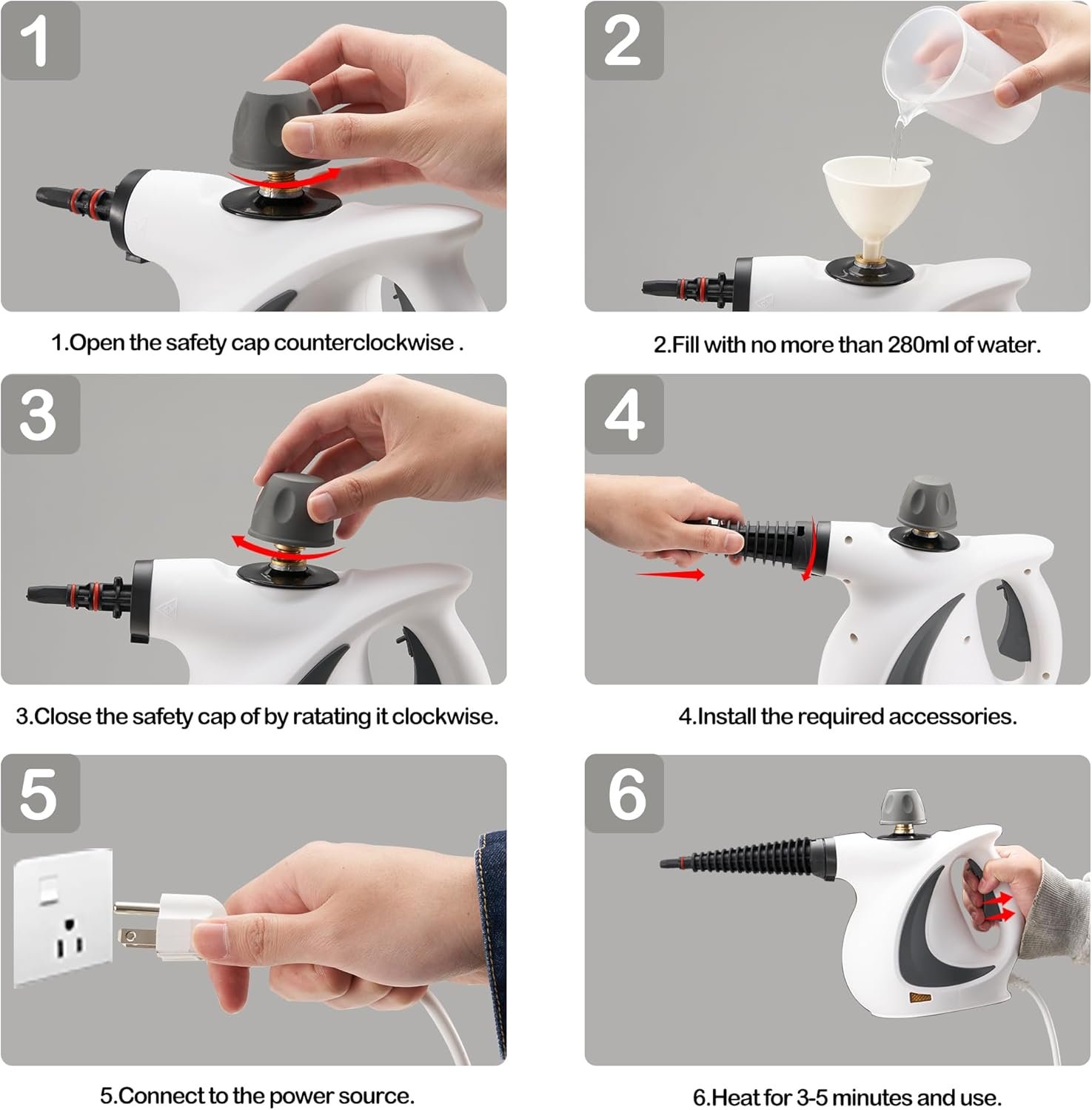 • Multifunktionaler Dampfreiniger - Unser Handdampfreiniger wird zur Reinigung von Schmutz und Flecken auf Boden, Auto, Teppich, Fenstern und Kleidung verwendet. Mit exklusiver Petented Technologie, Hochdruckdampf und Hochtemperatur-250°F (115℃), Dampfschuss kann auch zum Entfernen von Staub verwendet werden. Es ist ein umweltfreundliches und hygienisches Produkt.