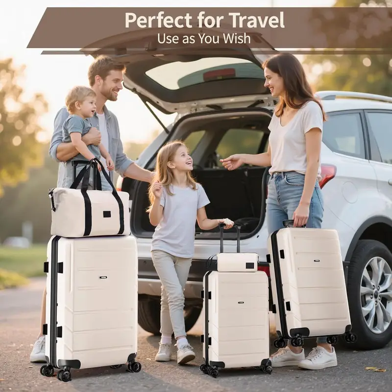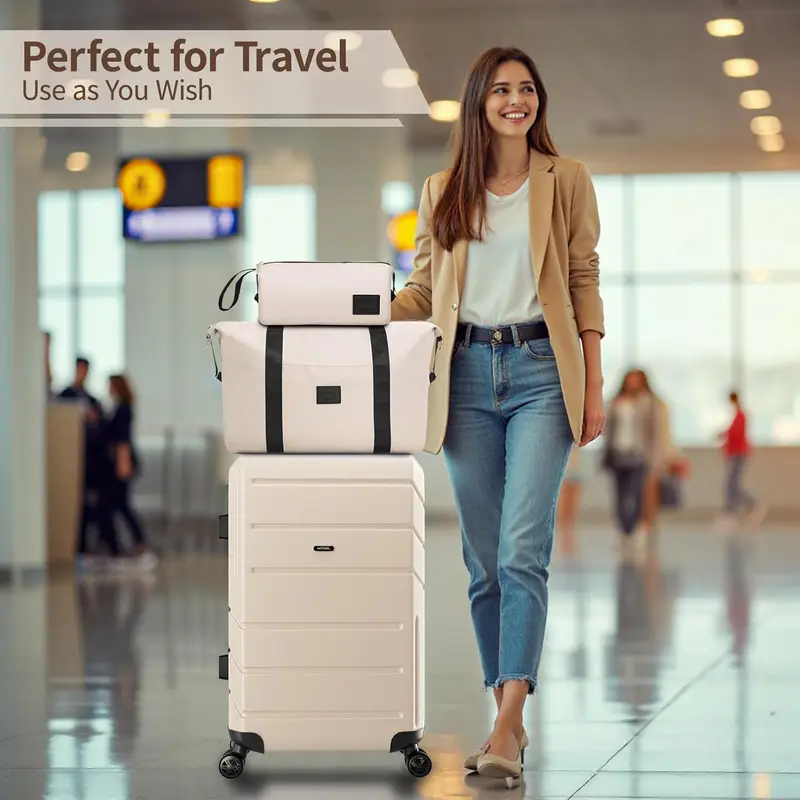 Dieses 3-teilige Set umfasst einen 20-Zoll-Cabin-Koffer, einen 24-Zoll- und einen 28-Zoll-Upright-Koffer, die alle ineinander verschachtelt werden können.